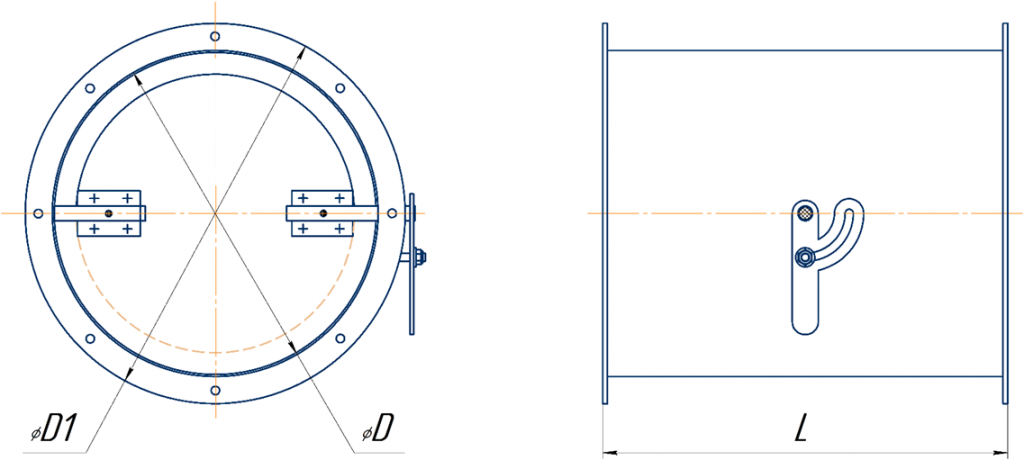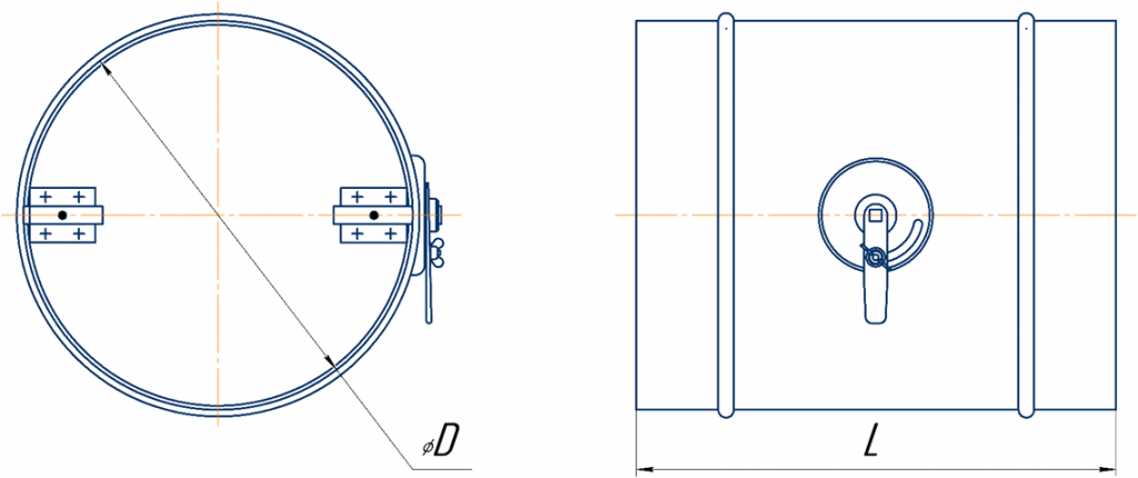 *Диаметр D - фактический наружный присоединительный диаметр заслонки.